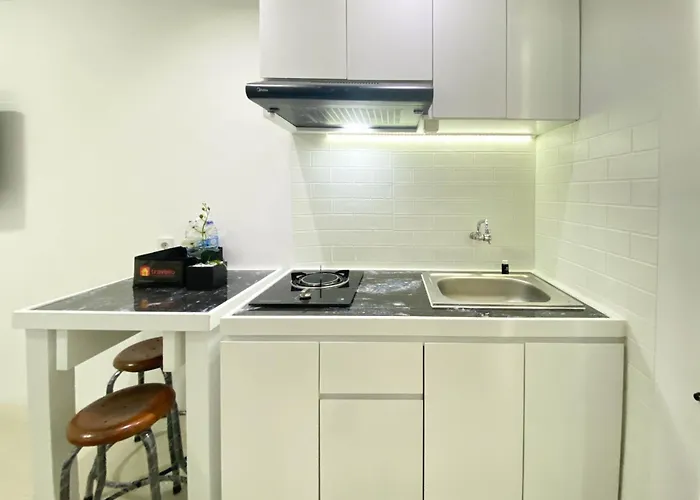There is a kitchen at Modern Design And Cozy Studio At Bassura City Apartment By Travelio, fitted with a fridge and a stove top. Modern Design And Cozy Studio At Bassura City Apartment By Travelio is not far from the nearest bus stop Pasar Enjo.